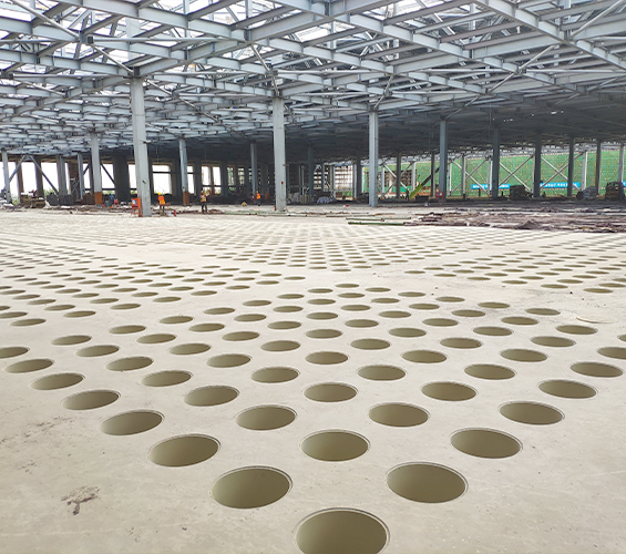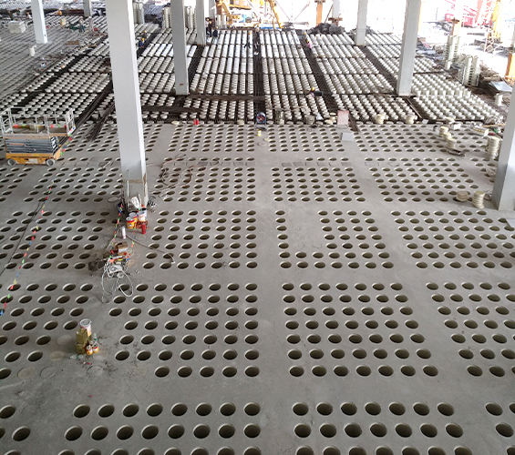 圓形華夫板的生產工藝具有以下優(yōu)勢:1.保證成孔準確與樓板平整度采用的生產工藝,使用標準模板...